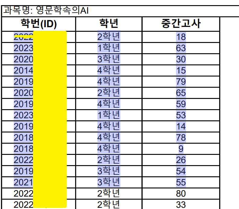 교수님이 시험 결과를 발표하셨는데 점수만 공개하시고 다른 추가적인 정보는 공개하지 않으셨다. 학우들의 전체 성적만 나와 있는 상황에서 시험이 어땠는지 파악하기 위해 파이썬을 활용해 보도록 하자!