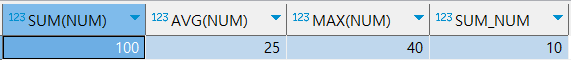SELECT SUM(NUM), AVG(NUM), MAX(NUM), MIN(NUM) AS SUM_NUM