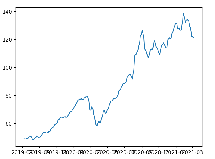 ma120 = df['Adj Close'].rolling(window=120).mean()