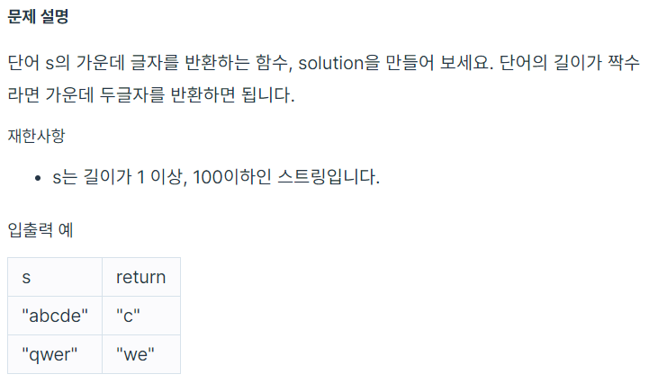 [PYTHON] 코딩테스트 문제 풀이 - 가운데 글자 가져오기
